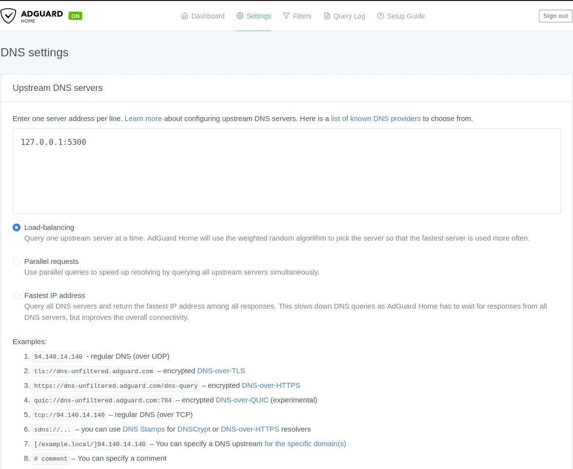 Note: By default, AdGuard Home uses port 53. Therefore, we are using port 5300 for HNSD to avoid conflicts. You can choose a different port if desired.
