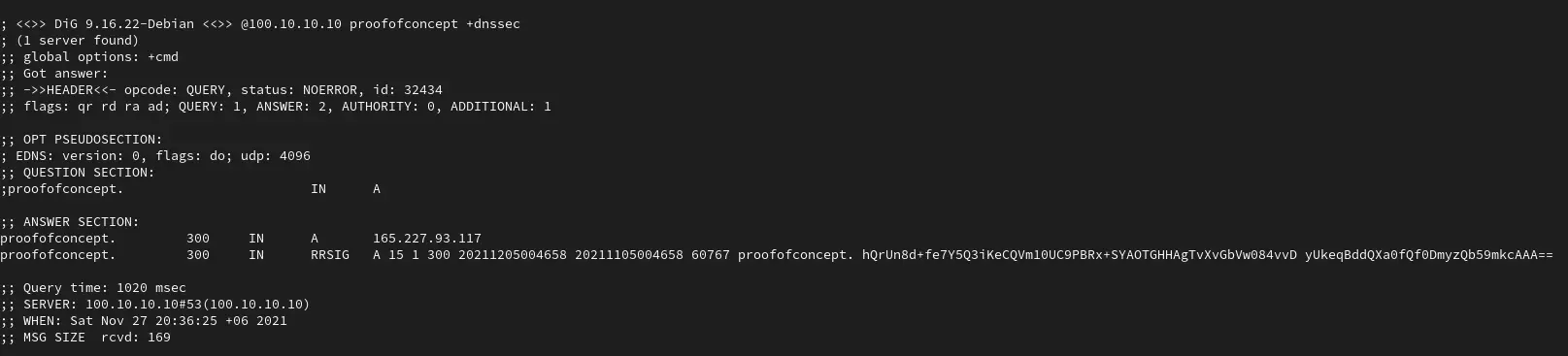 dig @YourAdGuardHomeIP proofofconcept +dnssec Example: dig @100.10.10.10 proofofconcept +dnssec